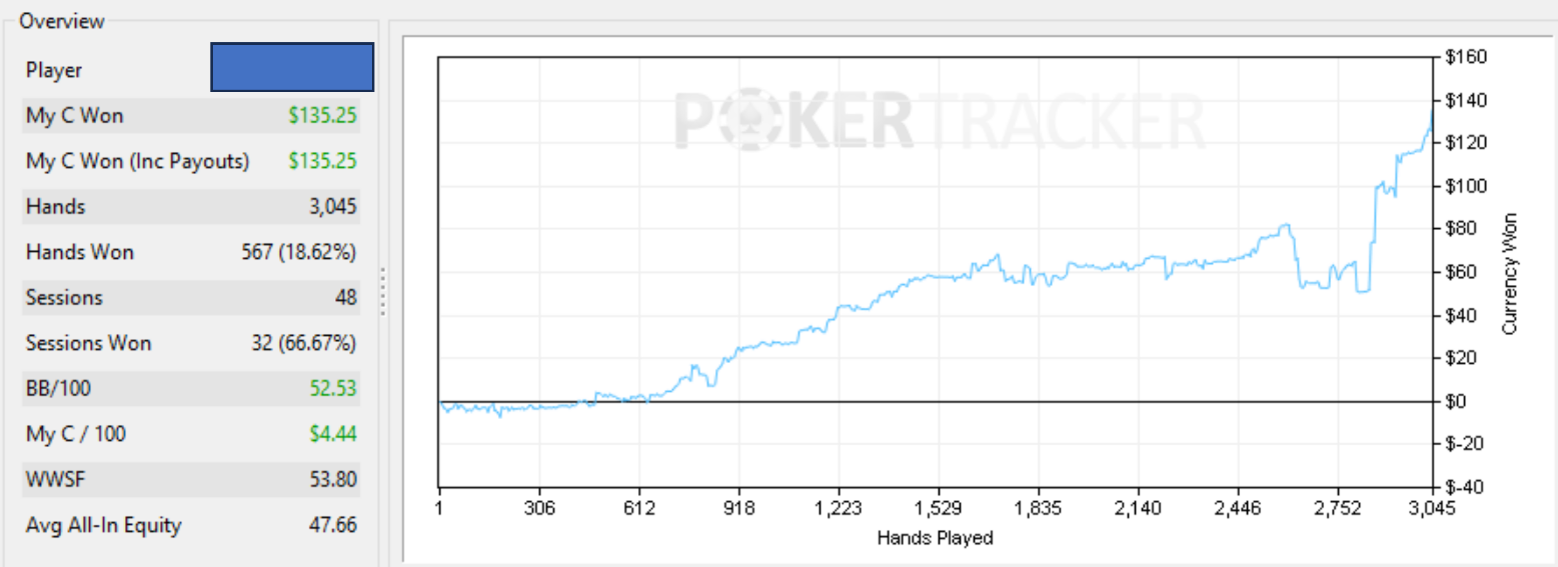"Last week I posted my results on Discord for February: -3.51bb/100 (-$58.31) over 83K hands.