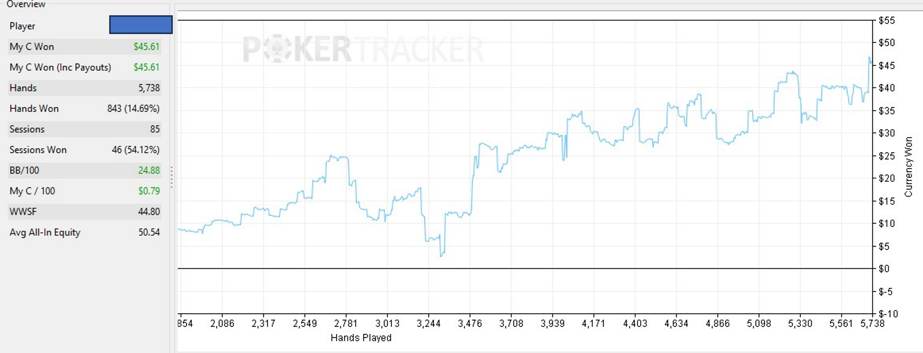 #'s from Tom's 5.7K hands at 5nl: +$45.61 (9 buy-ins!), +24.88bb/100 hands, WWSF 44.8%, Sessions Won 54%.